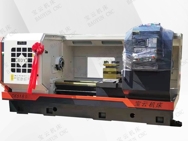 寶云CK6180主軸齒輪箱三檔內無極變速數控車床標準配置:廣州數控GSK-980TDI數控系統,整體落地床身,重型導軌寬度600毫米,11KW普通主電機,11KW國產變頻器,CK6180(Φ630手動四爪卡盤或Φ400三爪卡盤),手動尾座、四工位電動刀架、自動潤滑系統、電動冷卻系統,照明系統、半封閉護罩、德力西電器控制元件,全套技術資料、隨機標準附件及工具。